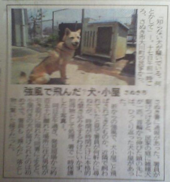 強風で飛んだ?犬・小屋 2007/05/18 四国新聞